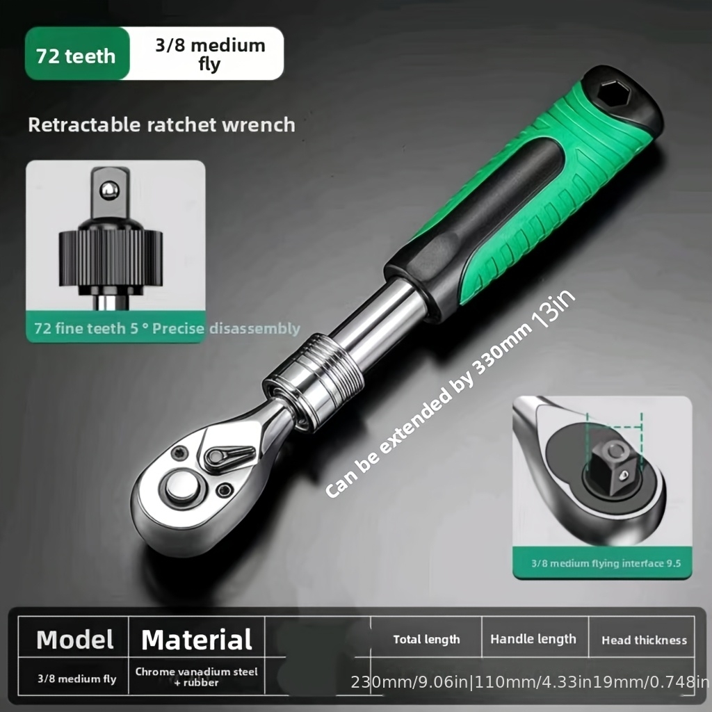 TEMU 1/2-3/8 텔레스코핑 확장 라쳇 렌치 - 1/4" 24T 스패너, 조절 가능한 미끄럼 방지 그립, 자동차 수리/기계 작업용 전문 도구