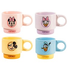 oowov 디즈니 미키 시리즈 스태킹 손잡이형 세라믹 머그컵 4개입, 1세트, 미니+데이지+미키 마우스+도날드 덕