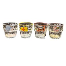 StarR 디즈니 위니 더 푸 캐릭터 일러스트 스태킹 타입 유리컵 4개입, 1세트, 이요르+푸+티거+피글렛