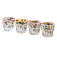 StarR 디즈니 캐릭터 일러스트 앤 도트 패턴 프린팅 스태킹 타입 유리컵 4개입, 1세트, 미니+미키 마우스+데이지+도날드 덕