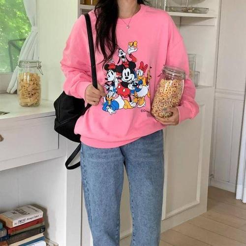 H스타일(TS)얼굴미키맨투맨 봄 여성 맨투맨 티셔츠 디즈니 MTM 라운드 데일리