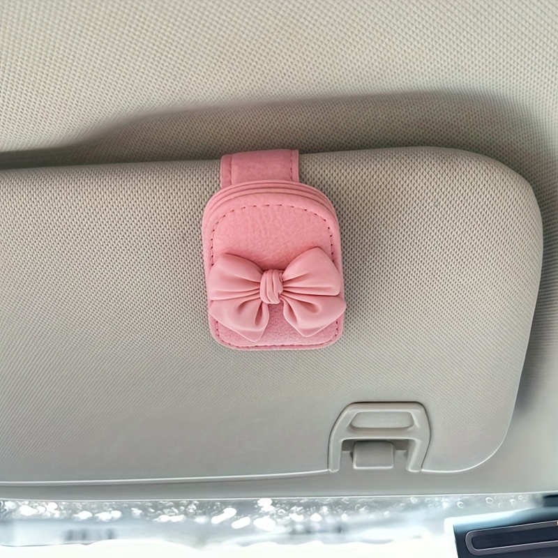 TEMU 귀여운 핑크색 자동차 햇빛 가리개 안경 홀더 (리본 장식), 안경 보관 랙, 차량용 액세서리