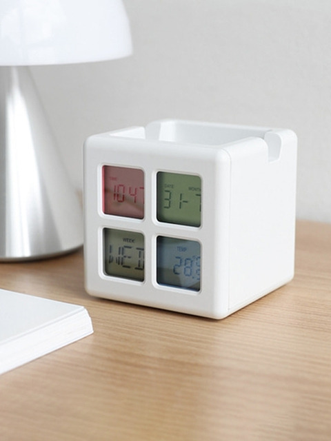 [히키스] 데스크 펜꽂이 디지털 캘린더 온도표시 알람시계 DAYS