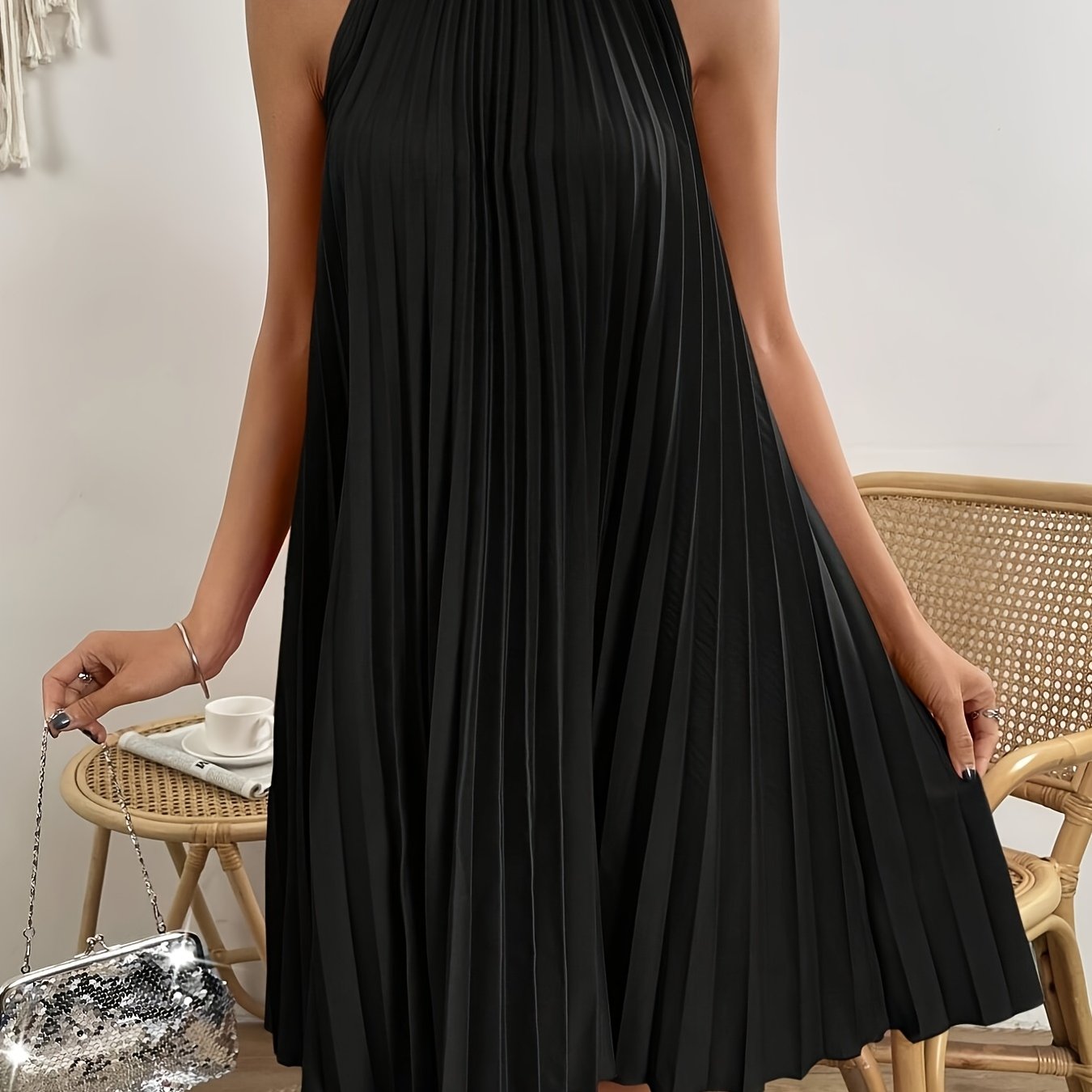 TEMU 블랙 민소매 숏 스커트 - 우아한 하이넥 주름 캐주얼 스커트 - 흐르는 듯한 A라인 2026 봄 신부 들러리용 패션