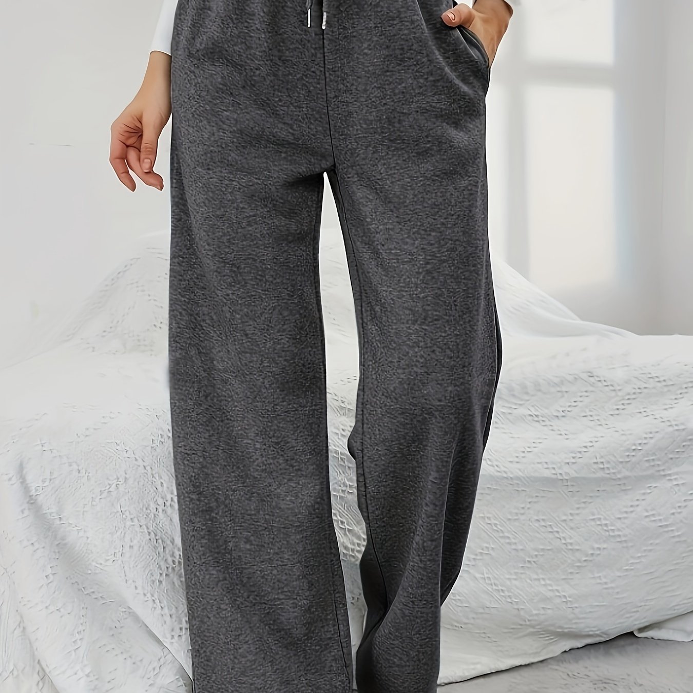 TEMU 1pc 여성용 단색 캐주얼 스웨트팬츠, 폴리에스테르 니트 미드웨이스트 루즈핏 와이드 레그 팬츠 포켓 포함, 올 시즌 컴포트 핏