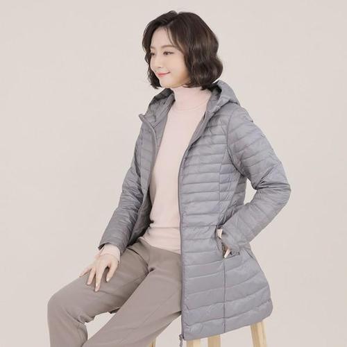 [애비뉴투지]엄마옷 슬림 허리라인 경량 후드 오리털 여성 가을 겨울 패딩 점퍼 하프 자켓 J10025 50대 6..