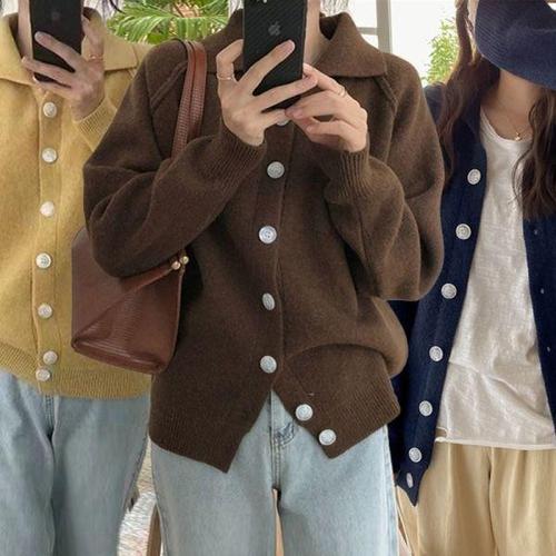 TEMU 여성용 우아한 V넥 가디건 - 루즈핏 긴소매 스웨터 코트, 버튼 앞면, 두꺼운 따뜻한 가을 & 겨울 재킷, 오피스, 파티, - 아시아풍 여성 의류, 가디건 스웨터, 파티 복장, 오피스룩, 여성 니트, 여성 상의, 가디건 여성, 긴소매 가디건, 가디건 오 coquine