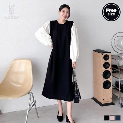 벨라도나 국산 여성 가을 리시안셔스 배색 롱 원피스 BLN25_AK21