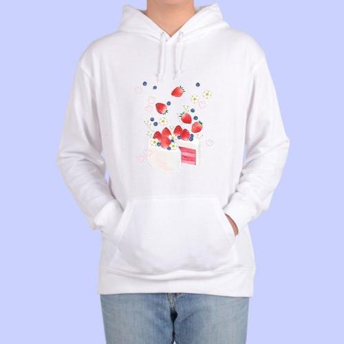 [BZJL2Q94_4C]기모후드티 케익 딸기 디저트 수채화 디자인