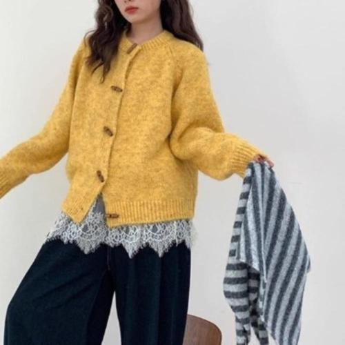 |CCJ6D1D|여성 라운드넥 버튼 떡볶이 스타일 폴리에스터 니트 가디건