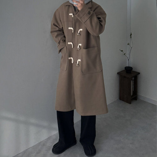 떡볶이코트 뿔단추 후드 모직 핸드메이드 반코트 남여공용 커플 학생 교복 자켓 더플 TS707