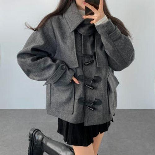 여성겨울반코트 오버핏 모직 반코트 여성코트 여성겨울코트 카키 겨울코트 숏코트 루즈핏 떡볶이