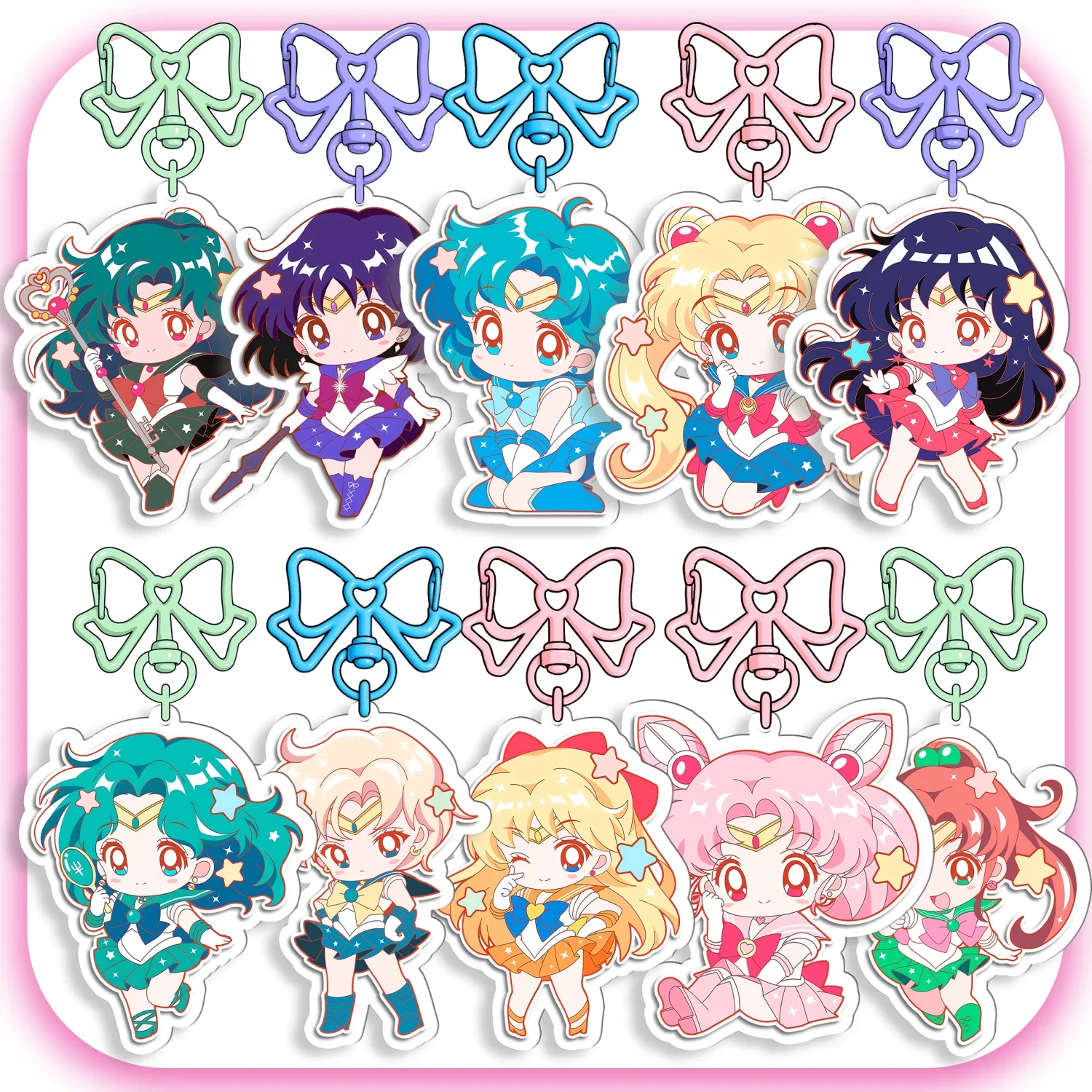 세일러문 리본 아크릴 키체인 히노 아미 아이노 미나코 테노 하루카 소녀 주변 상품 가방 키 애니메이션 피규어 키링 장신구