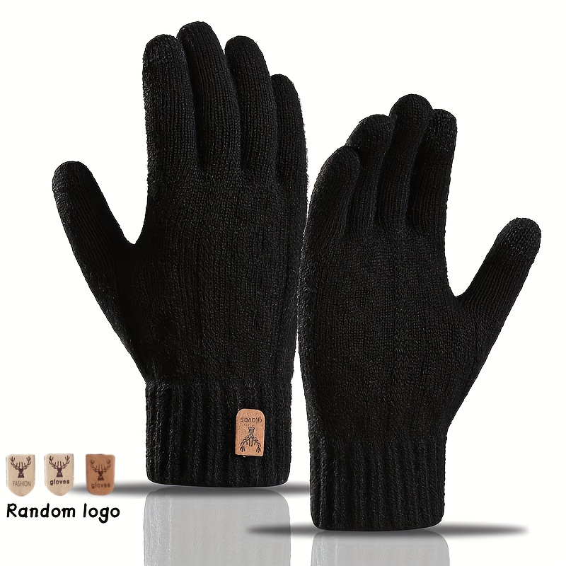 TEMU 1쌍 남성용 터치스크린 겨울 장갑 - 플리스 안감 두꺼운 추위 방지, 탄력 있는 커프스, 단색 스트리트웨어 디자인, 야외 활동 및 일상 사용, 눈 덮인 조건, 도시 패션, 내구성 있는 원단, 스타일, 손세탁 가능, 추운 기후 착용