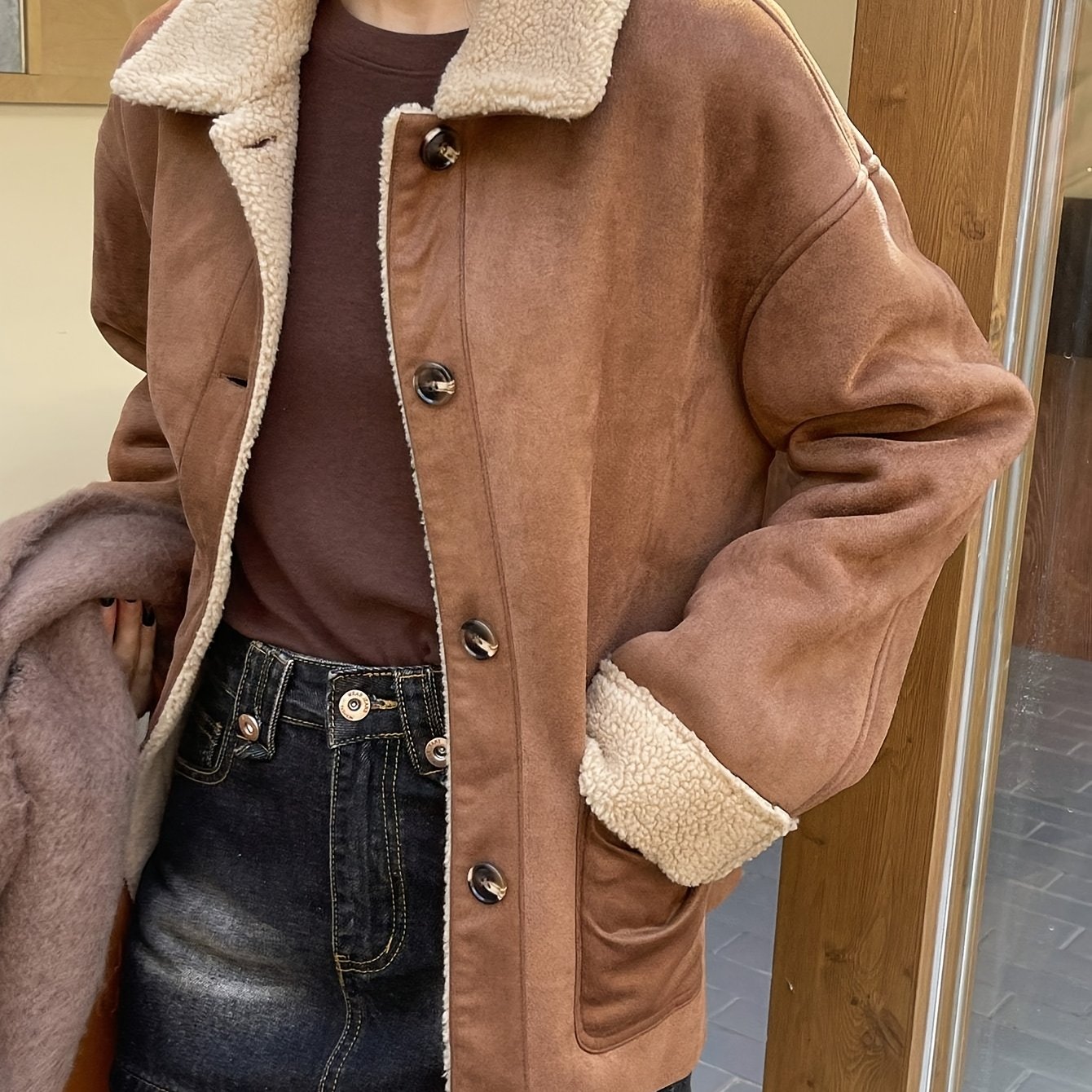 TEMU 여성용 우아한 루즈핏 재킷 - 버튼 프론트 클로저, 브라운/블랙/베이지 컬러의 시크 오피스 & 데일리 코트, 여성용 구조적 캐주얼 아우터웨어, 클래식 터다운 칼라, 내구성 있는 따뜻한 원단, 직장 필수품, 디자인, 고품질 스티칭, 프로페셔널 여성용