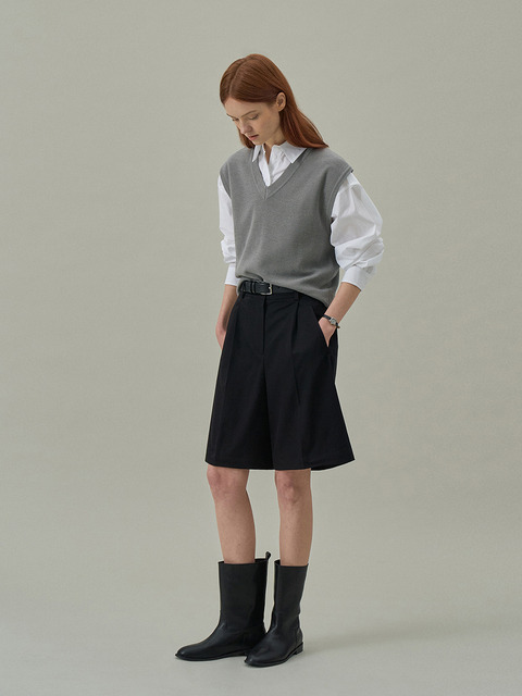 [라메레이] 원턱 버뮤다 팬츠_블랙