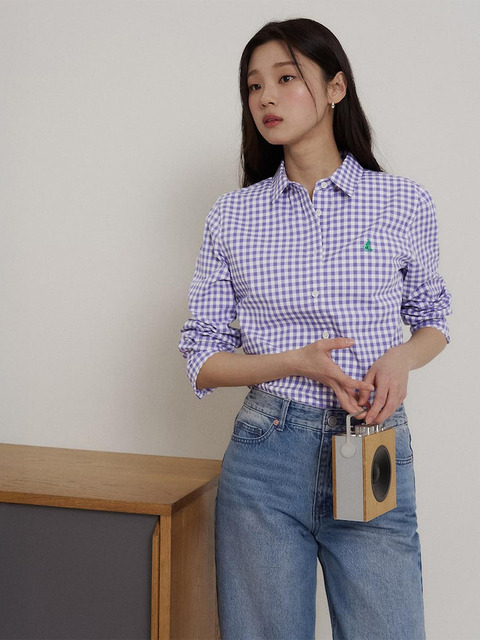 [빈폴레이디스] 코튼 혼방 깅엄체크 슬림숏 셔츠라벤더 (BF6264C07T)