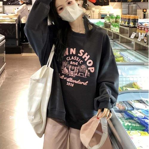 [셀럽하우스]기모 AUFD6348 루즈핏 박시 멘두맨 레터링 라우드티셔츠 티셔츠