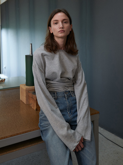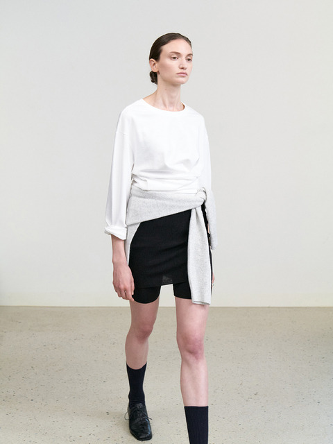 [스텝어라운드] 웨이스트 랩 라운드 울 티셔츠_멜란지 그레이