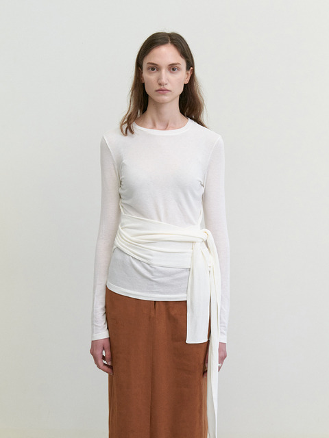 [스텝어라운드] 웨이스트 랩 라운드 울 티셔츠_아이보리