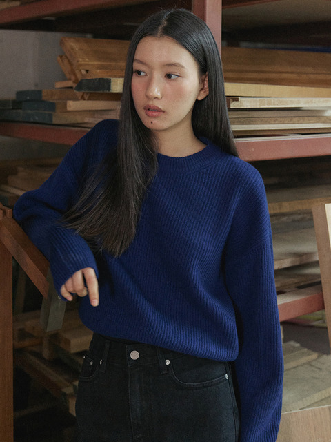 [스텝어라운드] Series line - Cashmere drop round knit_OCEAN BLUE