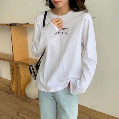 [셀러허브_여성트랜드패션]ONM 여자 영문 레터링 포인트 라운드넥 깔끔한 긴팔