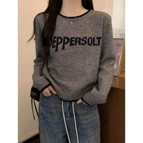 [샵앤]여성 라운드넥 영문 레터링 데일리 긴팔 니트티 21DS-WKN-4982-그레이