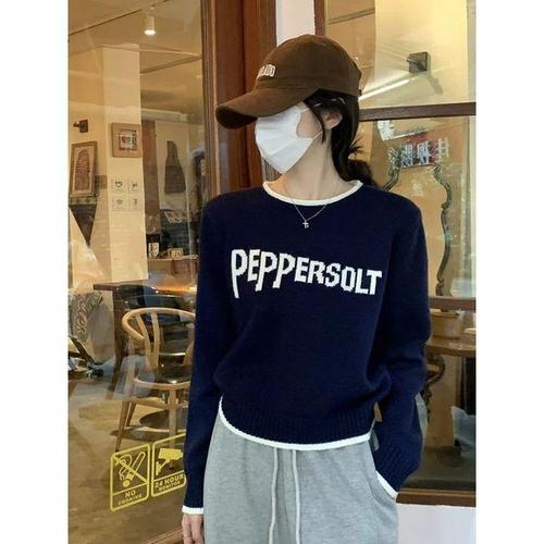 [샵앤]여성 라운드넥 영문 레터링 데일리 긴팔 니트티 21DS-WKN-4982-네이비