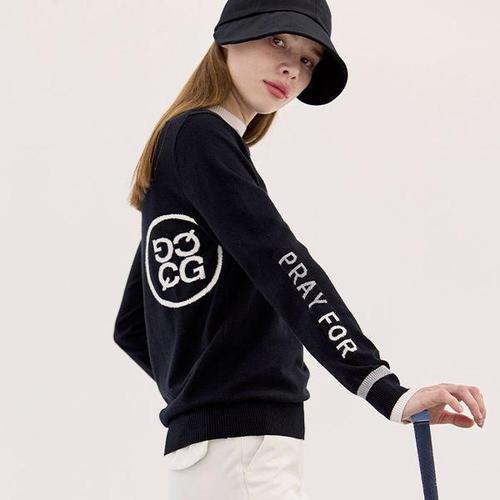 [큐오지]골프 소매 영문 레터링 배색 라운드 니트
