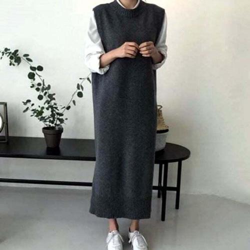 [셀럽하우스]데일리 IMTH1373 절개 니트조끼 라운드넥 밑단 패션 롱