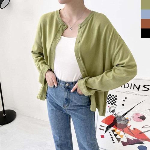 여사친 롱 니트 봄 멋내기 루즈핏 카디건 옷 라운드 쇼트 싱글 솔리드 상의 스포M1