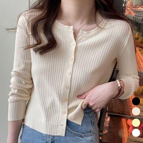 [다잇템]여성 얇은 FW 롱슬리브 라운드 골지 가디건