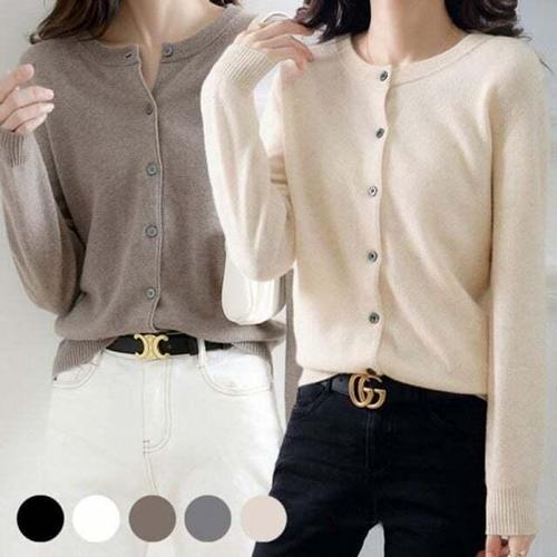 [신상오픈런]여성 라운드넥 롱슬리브 가을 니트 가디건 콩단추 심플 디자인