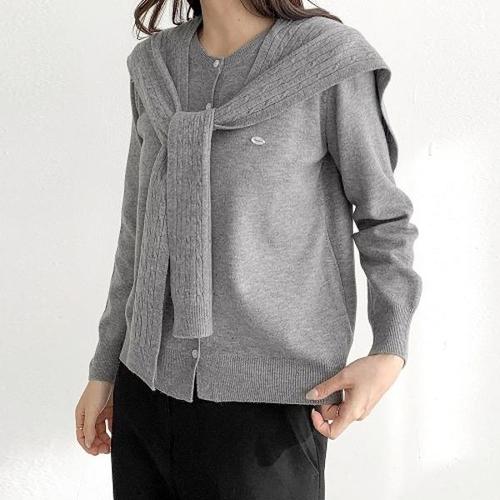 [다잇템][다잇템] 여자 코디 미니멀리즘 꽈니트숄 펜던트 라운드 가디건_23867251_588872