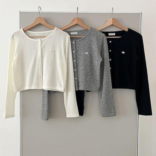 [다잇템]여자 라운드 펜던트 골지 단추 일상룩 가디건