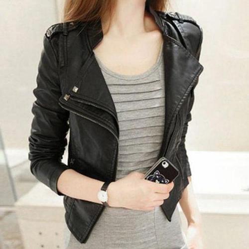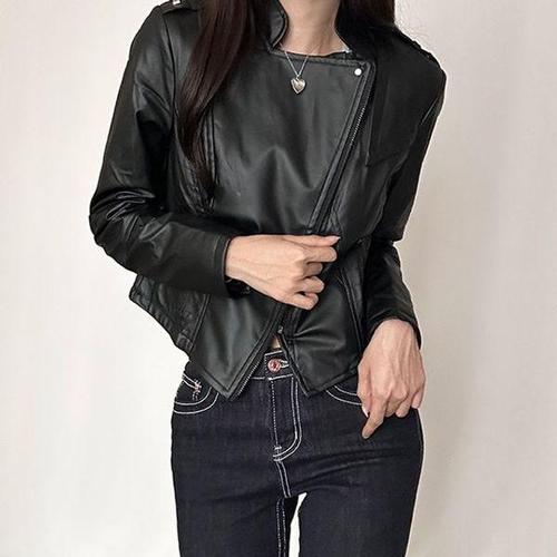 [에이치플러스몰]트랜디 심플 여성 라이더 레더 가죽 자켓
