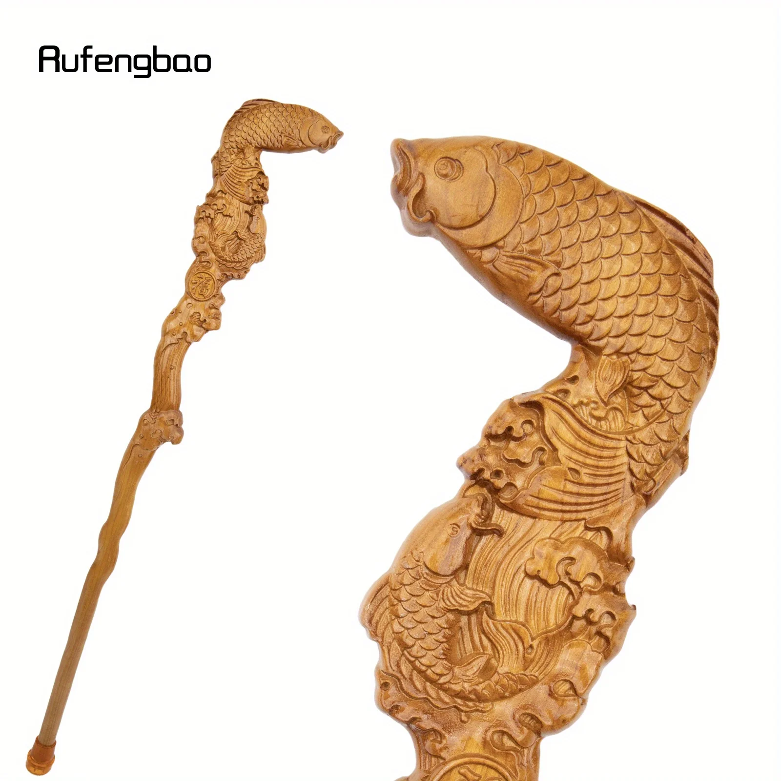 노란색 물고기 모양 나무 단일 관절 패션 우드 스틱 장식용 지팡이 할로윈 지팡이 94cm 공연 무대 지팡이