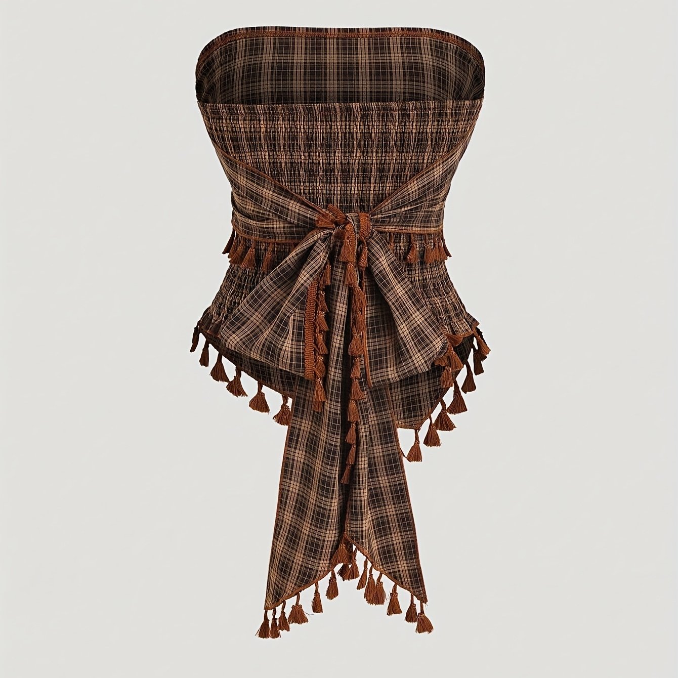 TEMU 프렌치 빈티지 체크 프린지 리본 크롭 탱크 탑 [Zllz]