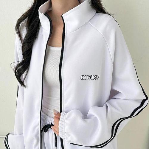 스포티 라인 져지 트레이닝 트랙 집업 숏 점퍼 [Y2K 세미 크롭 탑 하이넥 여자 여성 아우터]