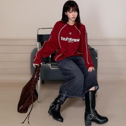 [신상오픈런]여성 캐주얼 배색 라인 루즈핏 트랙 맨투맨