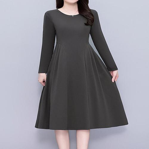 [비비진]캐주얼 편안한 중년여성 하객룩 봄 가을 40대 긴팔 허리밴딩 원피스