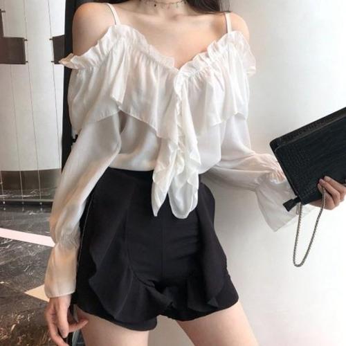 [엄지척]브이넥라인 프릴 센터프릴 오프숄더 2색상 블라우스_19643745_667501