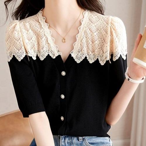 [셀러허브_여성트랜드패션]레이스 반팔블라우스 라인 여성 블라우스