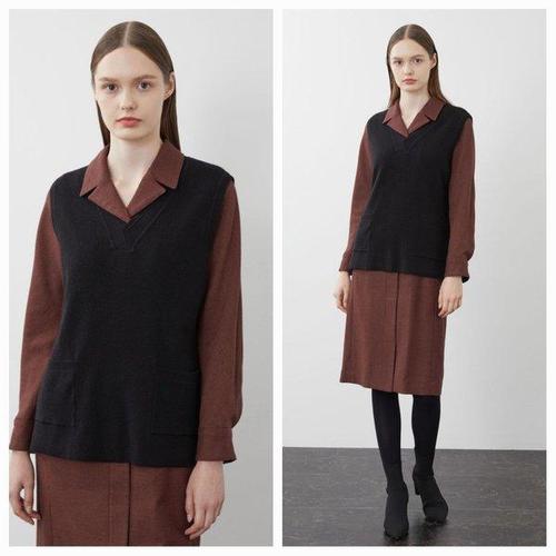 [JHQS87FW_4B]브이넥 라인 포켓니트 여성 캐주얼 조끼 니트