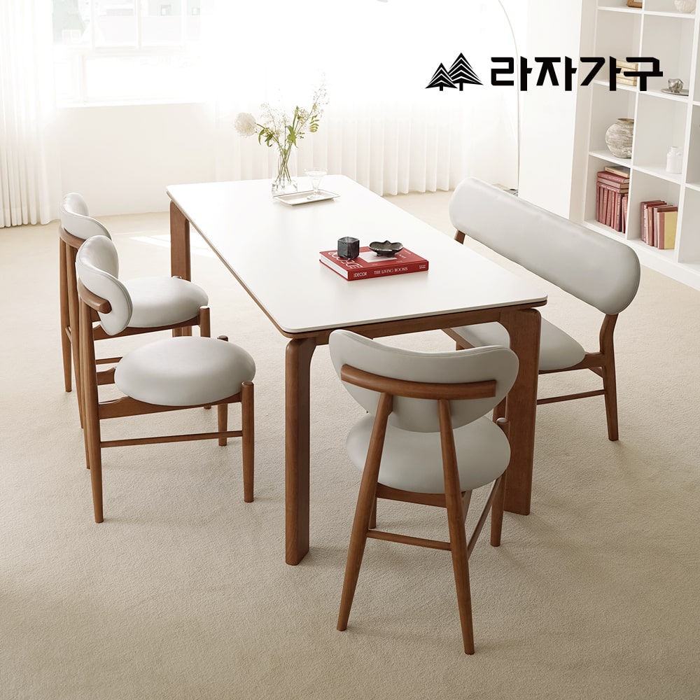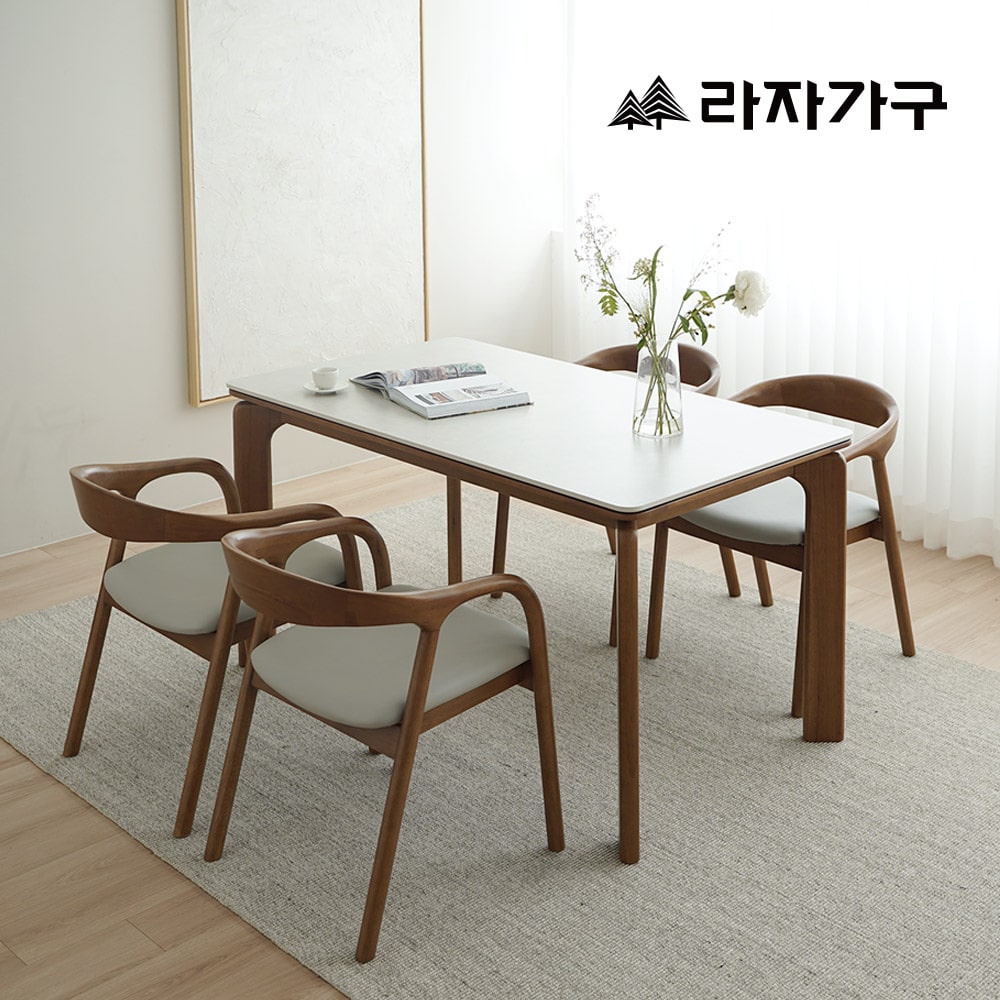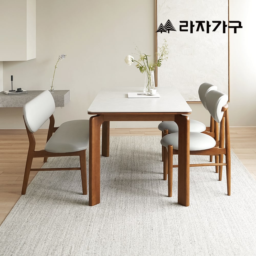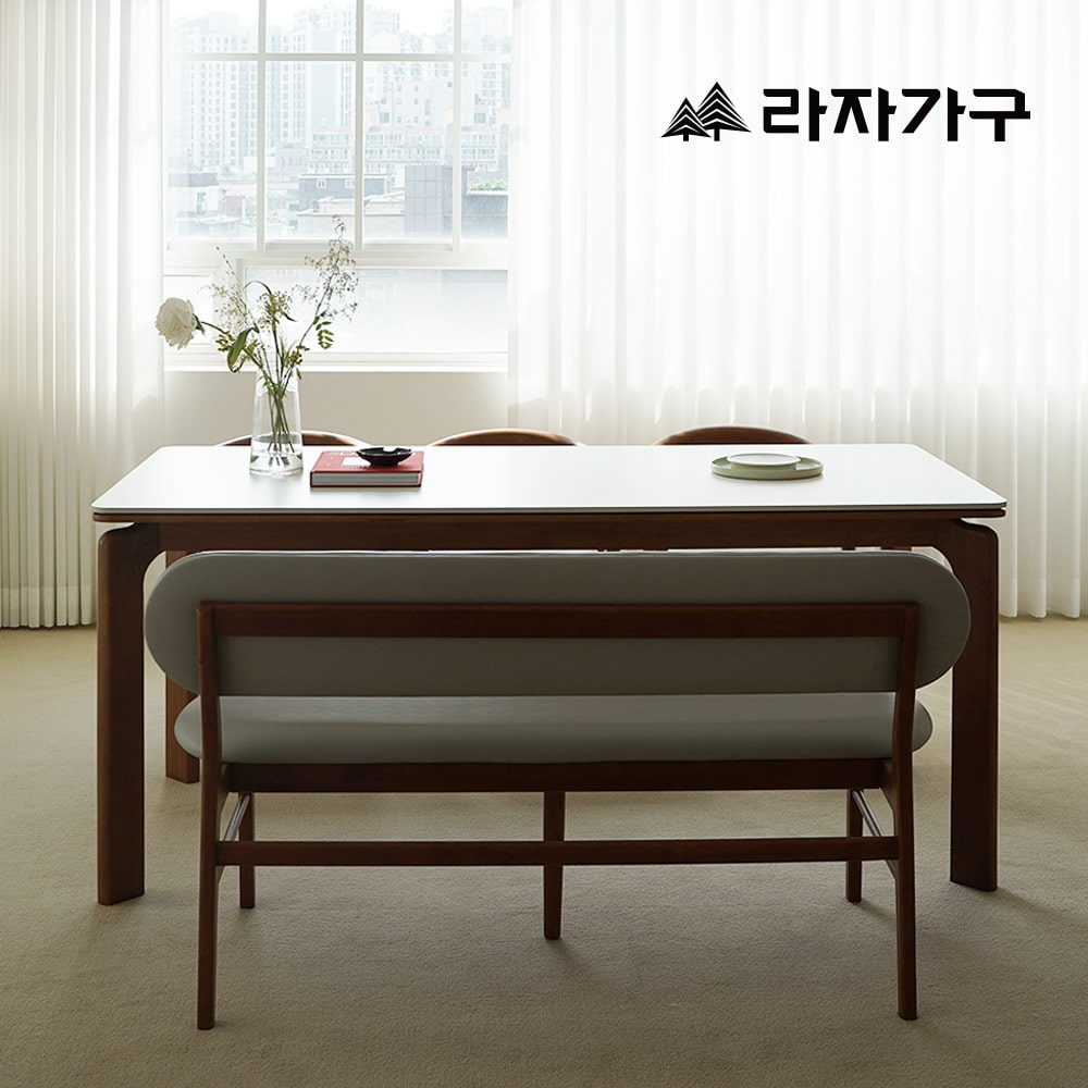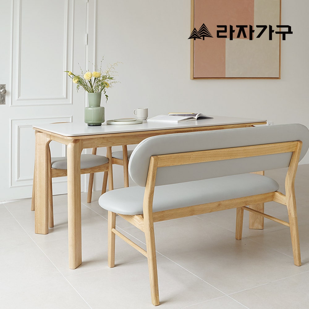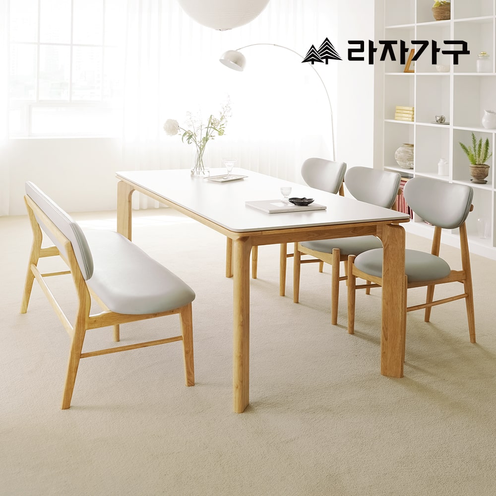 라자가구 폴 SE0 포세린 세라믹 원목 1400 테이블 4인 식탁세트 벤치2개