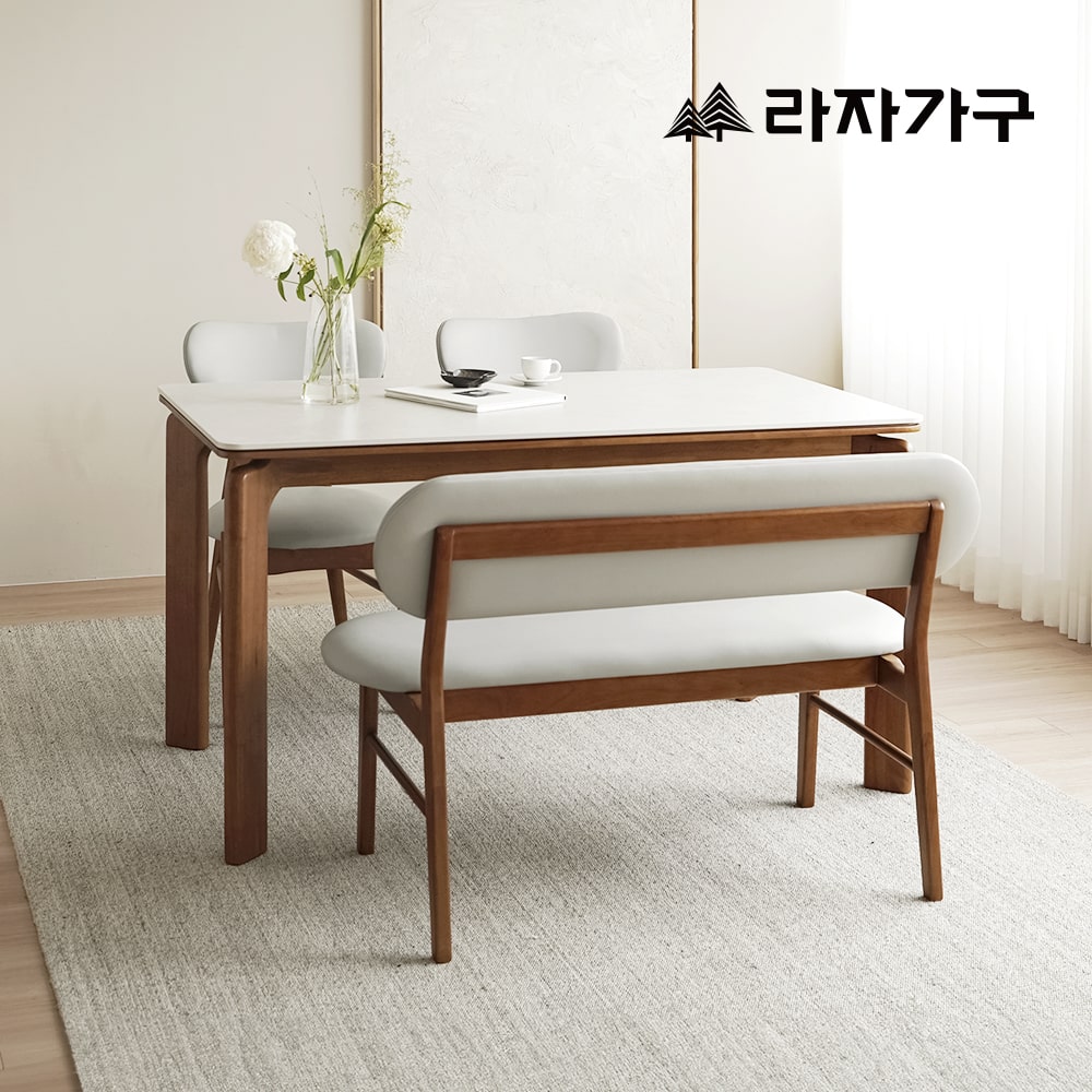 라자가구 에이든 SE0 포세린 세라믹 원목 1400 테이블 4인 식탁세트 벤치2개