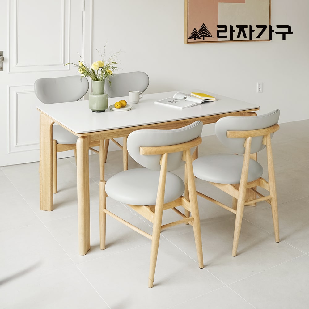 라자가구 에이프릴 세라믹 라운드사각 4인 테이블 1200 식탁세트(의자4개포함)
