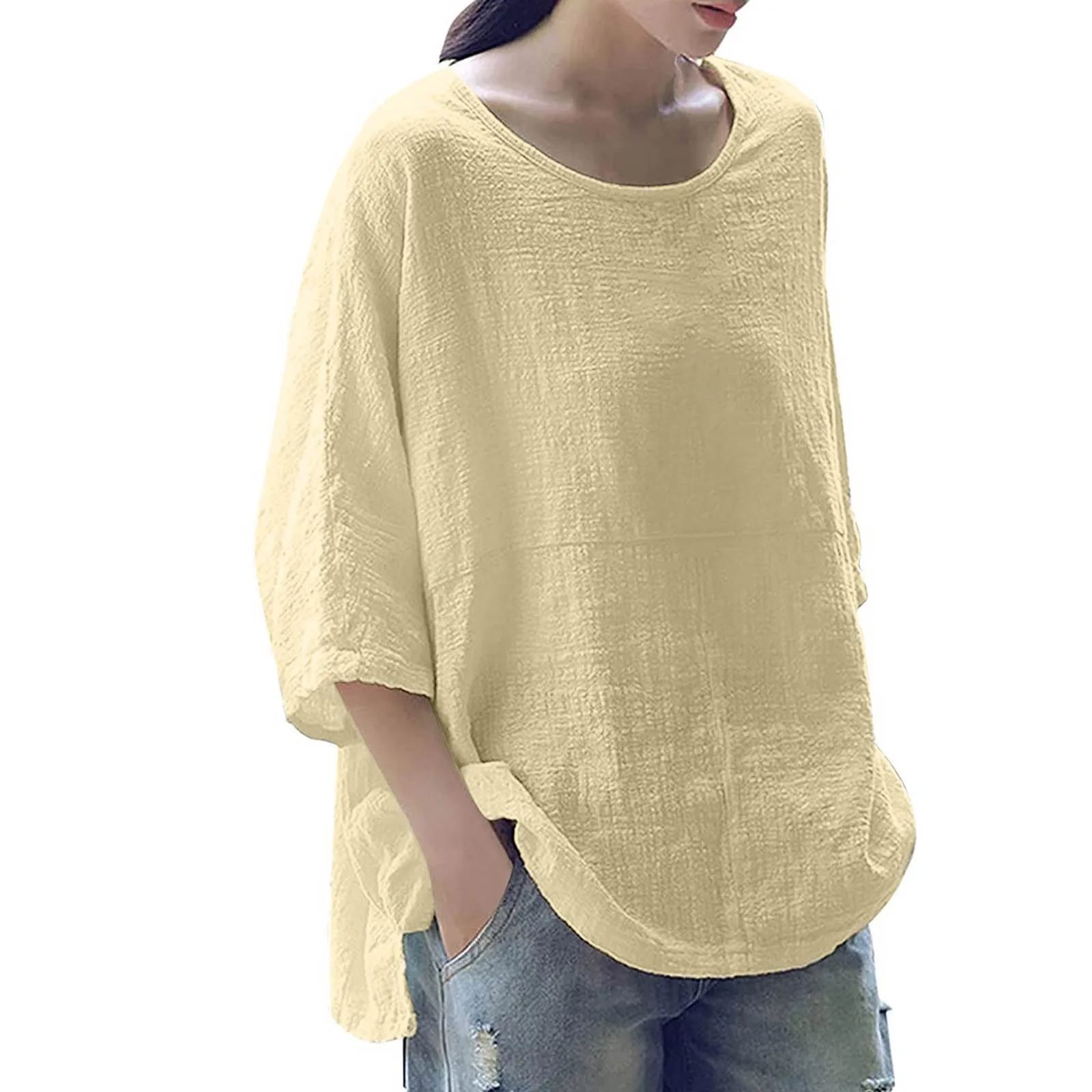 TEMU 플러스 사이즈, 플러스 사이즈 오버사이즈 반팔 티셔츠 - 솔리드 컬러 라운드넥 캐주얼 블라우스, 세탁기 사용 가능 - 편안한 캐주얼 의상, 플러스 사이즈 친화적인 중성색상으로 사계절 내내 입기 좋은 티셔츠