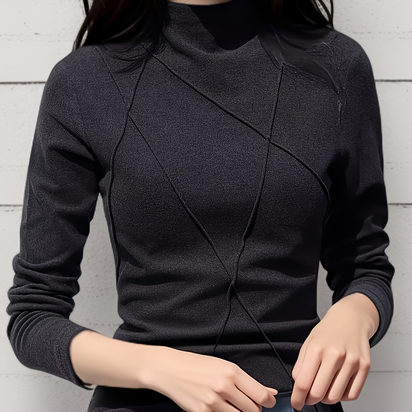 TEMU 여성용 세미 하이넥 베이스 레이어 탑, 가을/겨울 2023 신상 - 안감 포함 피쉬본 스티칭 우아한 두꺼운 내의 착용