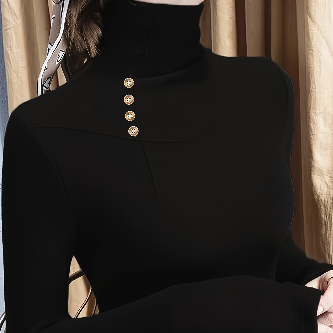 TEMU 가을-겨울 신상 양면 플리스 안감 여성용 하이넥 이너 레이어링 탑, 두꺼운 보온 다목적 블라우스
